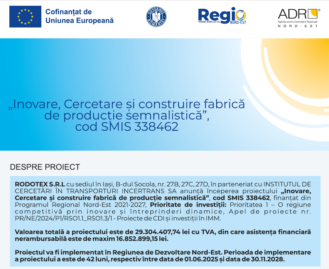 Date de contact: SC RODOTEX SRL, oraș Iași, România, str. Bd. Socola, nr. 27/B/C/D, e-mail – investitii(at)rodotex.com.